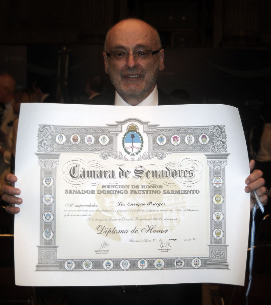 El Licenciado Profesor Enrique Prueger, Director Académico de nuestra institución, recibió el pasado 28 de marzo de 2014 la MENCIÓN DE HONOR «SENADOR DOMINGO FAUSTINO SARMIENTO» otorgada por el HONORABLE SENADO DE LA NACIÓN como reconocimiento a su vasta trayectoria y compromiso social ejercido a través de la ciencia criminalística.